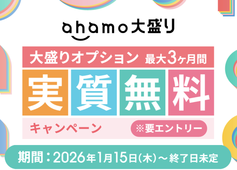 | ahamo大盛り | 大盛りオプション最大3ヶ月間実質無料 | 新規契約/他社から乗り換え/プラン変更 | 未定 |