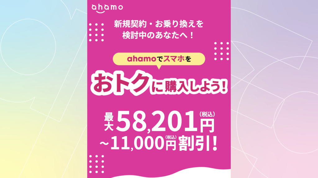 | ahamoでスマホをおトクに購入しよう | 対象端末が最大58,201円割引 | 新規契約/他社からの乗り換え | 未定 |