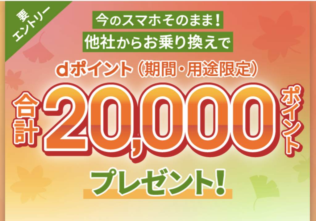 ・他社からの乗り換えでdポイント最大20,000ポイントプレゼント