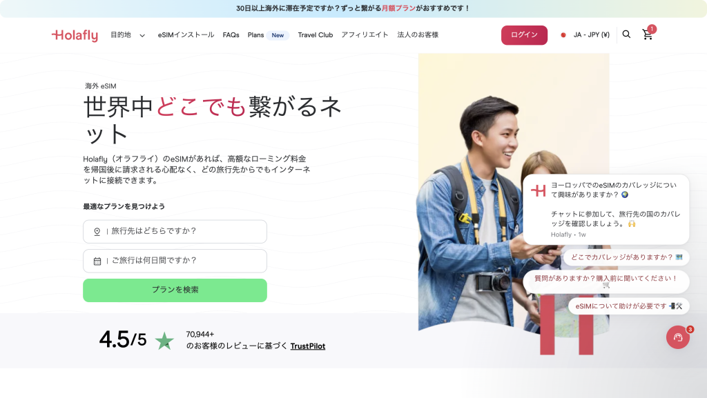 - シンプルな料金体系だと嬉しい方には「Holafly」