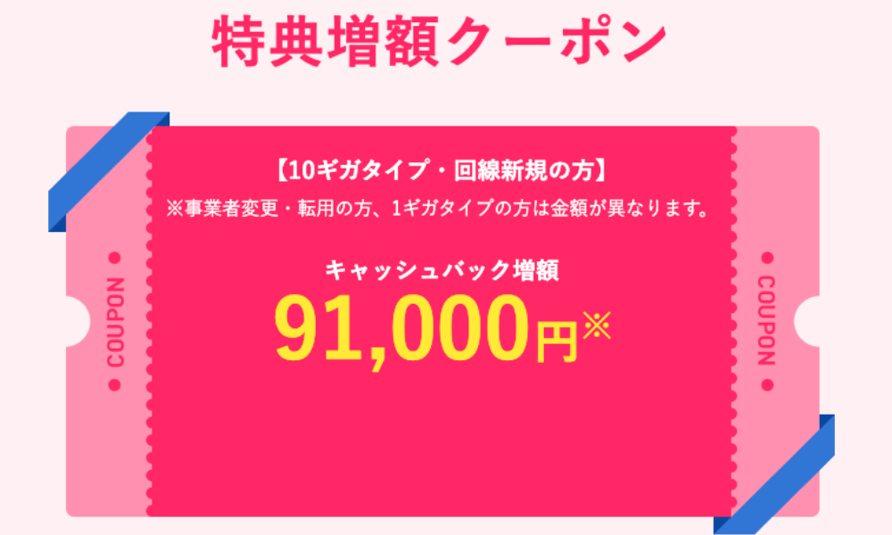 「クーポンコード入力で91,000円増額キャッシュバック!」 - ビッグローブの良い口コミ評判