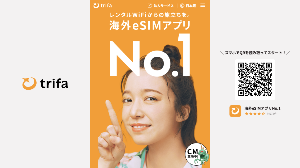 トリファ(trifa)は、世界200国と地域に対応しているeSIMです。