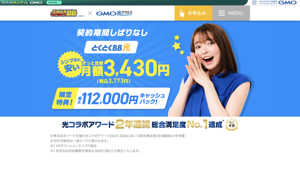 満足度が高いGMOとくとくBB光で、気軽にコラボ光を利用することができますよ!