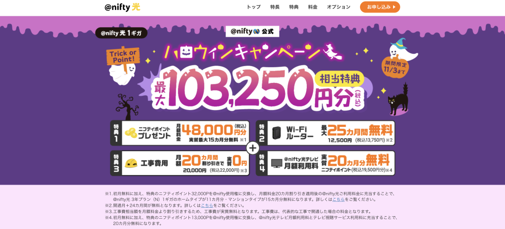 @nifty光では、最大で103,250円ものの還元が受けられます。