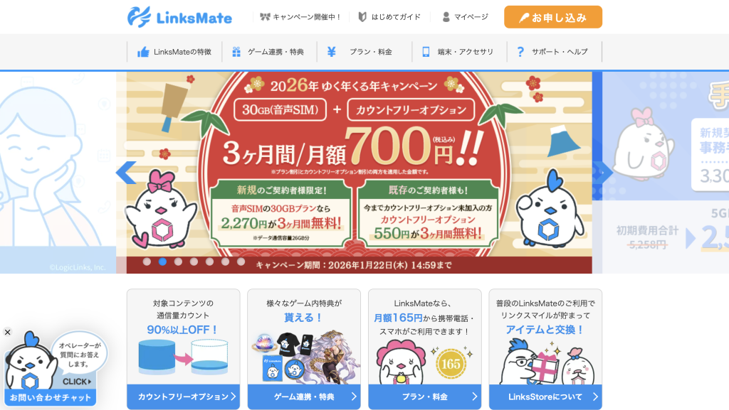 LINEやSNSのデータ量がカウントフリーとなっているサービスは他にもありますが、ゲームも対象となっているのはリンクスメイトだけなので、ゲーム好き必見のサービスだといえます。