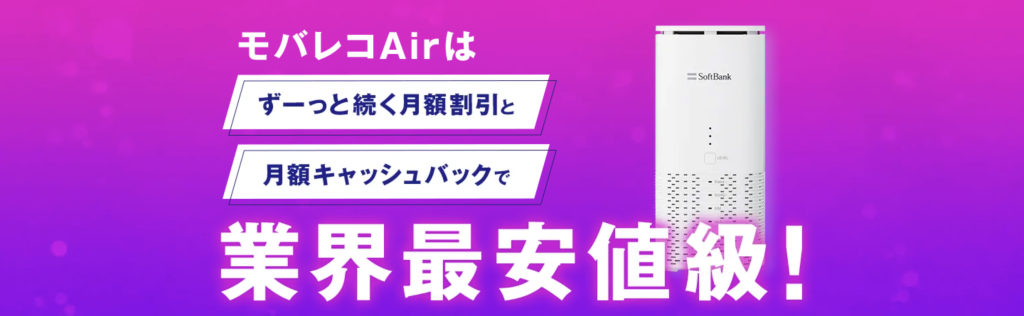 ソフトバンクエアーと同端末・同回線を利用しつつも、よりお手頃な価格で使えるモバレコAirを、ぜひこの機会にお試しください!