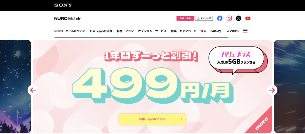 できるだけスマホの使用料を抑えたい、SNSを頻繁に使用する方にはぜひおすすめしたいNUROモバイルです。