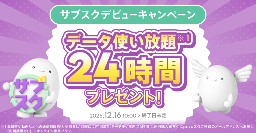 povoでは2025年12月10日(水)~2026年1月31日(土)の期間に「2025年 年末年始キャンペーン」を実施していました。