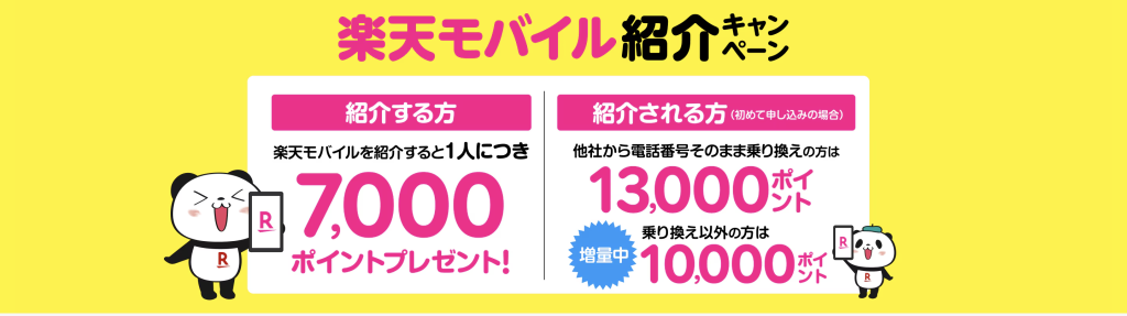 楽天モバイル紹介キャンペーン|最大13,000ポイントプレゼント