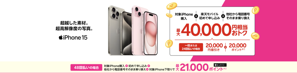 iPhone 15がおトク!最大40,000円相当還元キャンペーン!