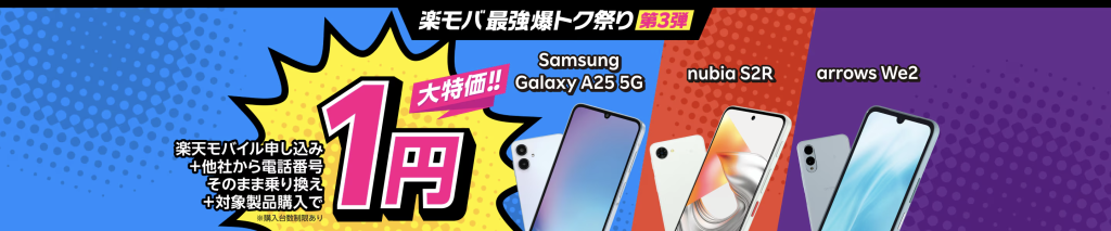 | 新生活応援キャンペーン | 楽天ポイント20,000ポイントプレゼント+端末代20,000円値引き | 他社からの乗り換え/新規登録/プラン変更 ※端末代20,000円値引きは他社からの乗り換えに限る | 2026年5月11日(月)08:59 ※店舗に限り終了日未定 |