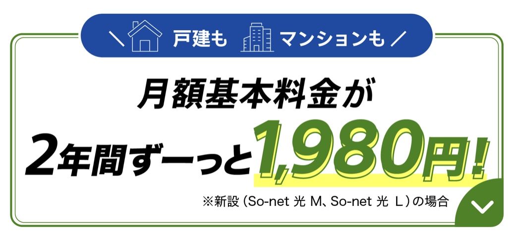 So-net光 Sに新規入会または他コースから変更することで、月額料金が2年間1,980円になります。