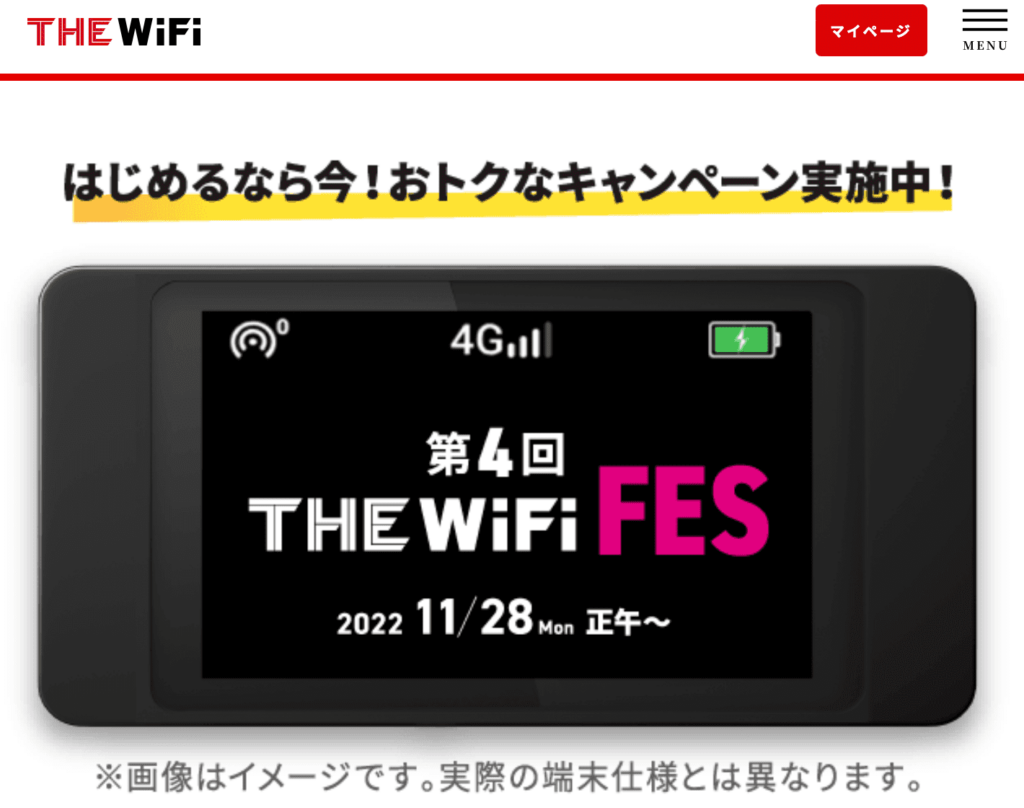 今開催中のキャンペーンを利用すれば、4ヶ月間0円ではじめられるTHE WiFi!