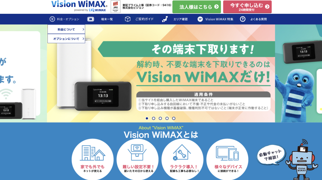 UQ WiMAX | Broad WiMAX | GMOとくとくBB | カシモ WiMAX | BIGLOBE WiMAX | 5G CONNECT WiMAX | Vision WiMAX | DTI WiMAX | ヨドバシカメラ WiMAX | J:COM WiMAX | BIC WiMAX | hi-ho WiMAX | ASAHIネットWiMAX | Yamada Air Mobile | エディオンネットWiMAX | |