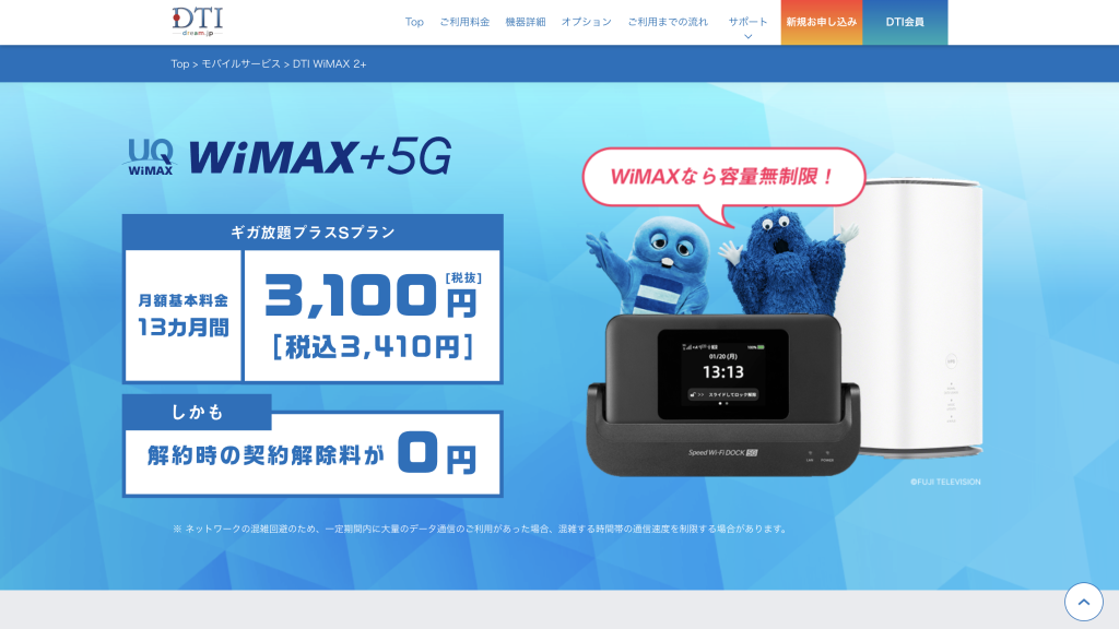 また、DTI WiMAX 2+に申し込みDTI会員になると、会員限定の「DTI Club Off」が利用できるようになります。