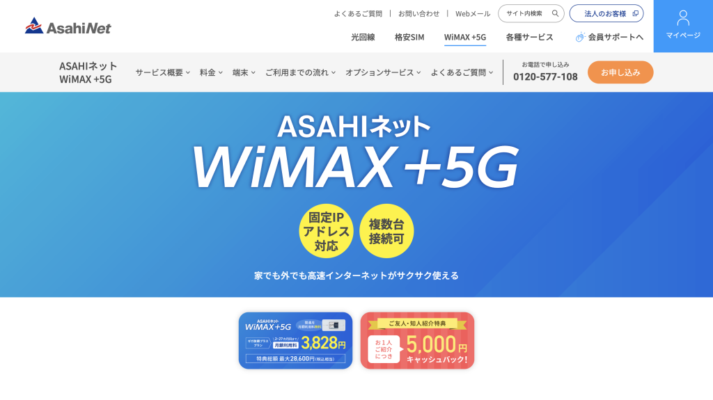 自宅でも屋外でも快適なインターネット環境を整えたいと考えている方におすすめのプロバイダです。