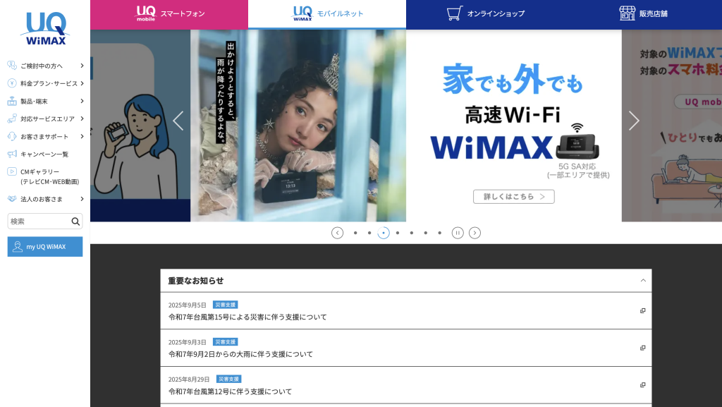 また、契約や設定に不安を感じる方は、実店舗のあるUQや家電量販店のWiMAXがおすすめです。