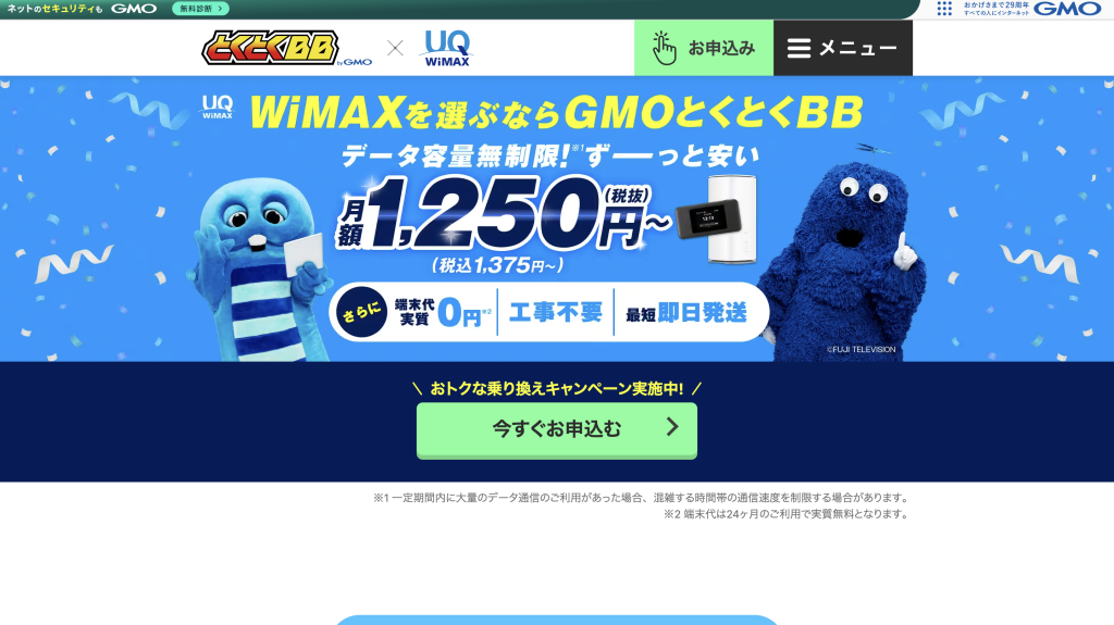 今回紹介した「GMOとくとくBB」であれば、光回線への変更も無料で行えますので、光回線と迷っている方はこうしたキャンペーンもうまく活用してみてくださいね。